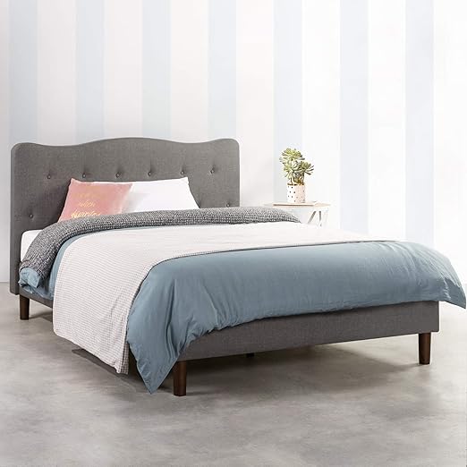 Amazon Com Mellow Janne Upholstered Platform Bed Modern Tufted Headboard Real Wooden Slats And Legs Classic Grey Queen Furniture Decor